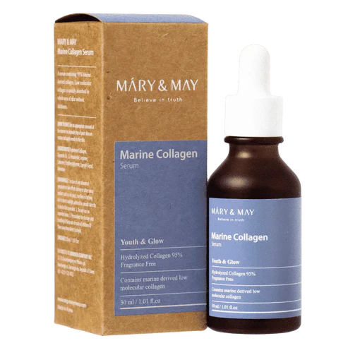 Ενισχύστε τη ρουτίνα περιποίησης της επιδερμίδας σας με τον ορό Marine Collagen της MARY & MAY, με 95% θαλάσσιο κολλαγόνο.