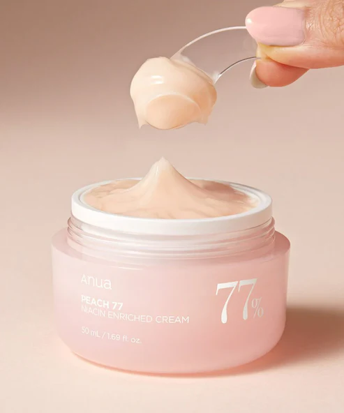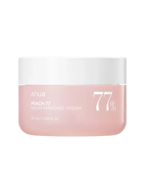 Αναζωογονήστε και ενυδατώστε το ξηρό δέρμα ενώ προάγετε το πιο σφριγηλό και ελαστικό δέρμα με την κρέμα εμπλουτισμένη με νιασιναμίδη Anua Peach 77, μια ιδανική λύση για την επίτευξη αυτού του πολυπόθητου λαμπερού και αναζωογονημένου δέρματος.