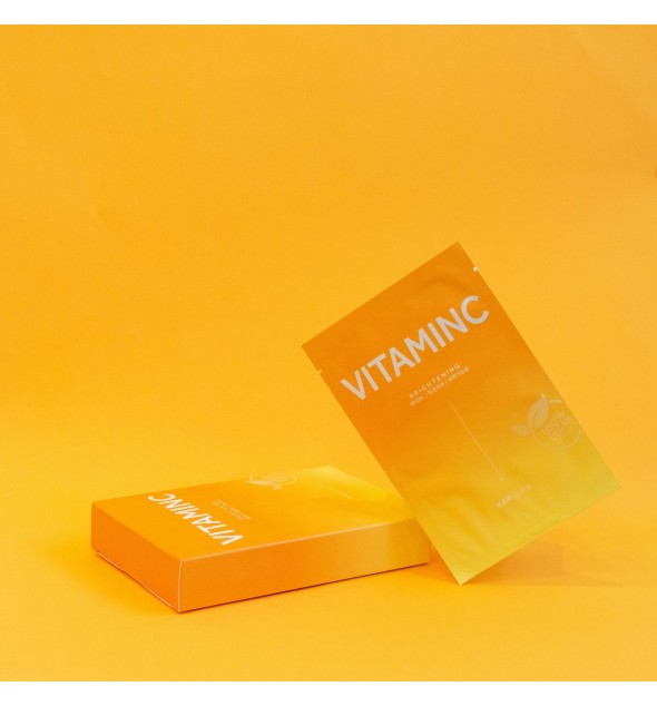 Μάσκα σε μορφή φύλλου με βιταμίνη C για λάμψη και ενυδάτωση του δέρματος. Η βιταμίνη C είναι γνωστή για τα σπουδαία οφέλη της, όπως η ικανότητά της να ενυδατώνει το δέρμα, να βοηθά στη μείωση της εμφάνισης των πόρων, να προάγει την επούλωση μικρών ουλών ακμής και να αποτρέπει πιθανά σπυράκια. Είναι επίσης ένα εξαιρετικό συστατικό για την αντιμετώπιση των πρώτων σημαδιών γήρανσης.